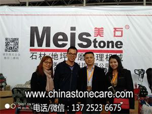 广州美石机械科技有限公司在此届展览会有新的地坪、石材高速抛光机、偏头晶面护理机械展出及现场机械实操训练与演示。很多不会操作机械设备的酒店用品公司负责人看了美石美女们个个都会操作晶面护理机械都很有兴趣来学习操作机械设备以便更加专业服务客户。美石机械接待了全国各地的很多新的清洁用品经销商、酒店用品经销商、大型配套供应公司,贸易公司,物业清洁公司、及港澳台专业石材护理公司。