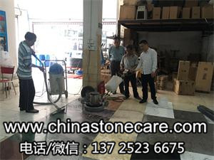 广州雷先生自己建了一栋近七千平方的别墅,铺设了一千多平方的大理石,因节约石材护理费用,就自己带领工人来我厂学习大理石打磨护理技术,并购买了机器设备一批,如下图:
