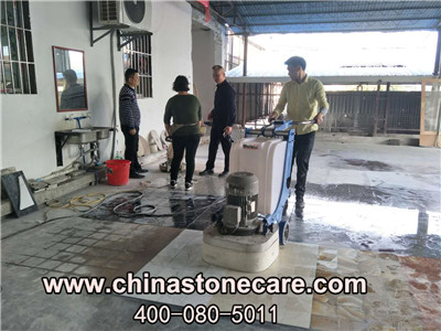 番禺刘先生来美石培训基地学习石材打磨翻新护理技术