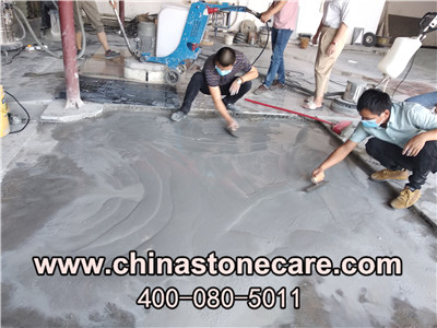 3、美石砼研磨系统整体研磨、机器回填修补。