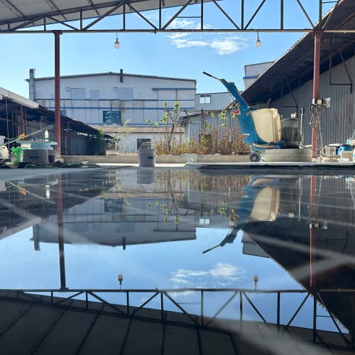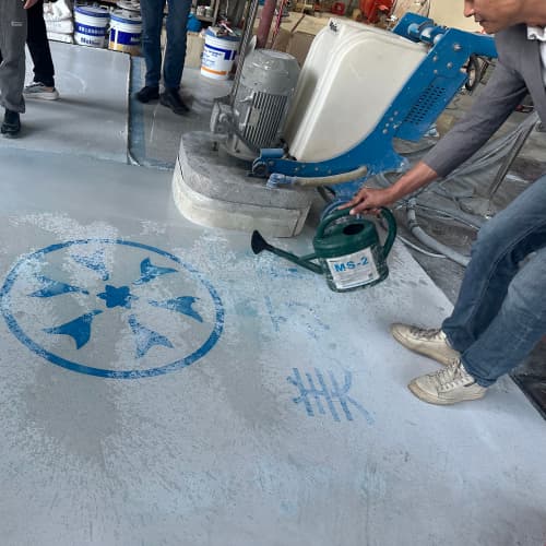 本期除了新型无机磨石施工的实操课程外,还有红砖抛光成镜的实操训练,以及无机高分子彩砂自流平的施工演示。